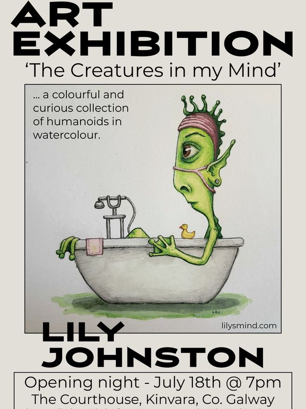 Lily Johnston's first solo Art Exhibition being held at The Courthouse, Kinvara, Co. Galway. All welcome to the Opening at 7pm on July 18th, 2025!